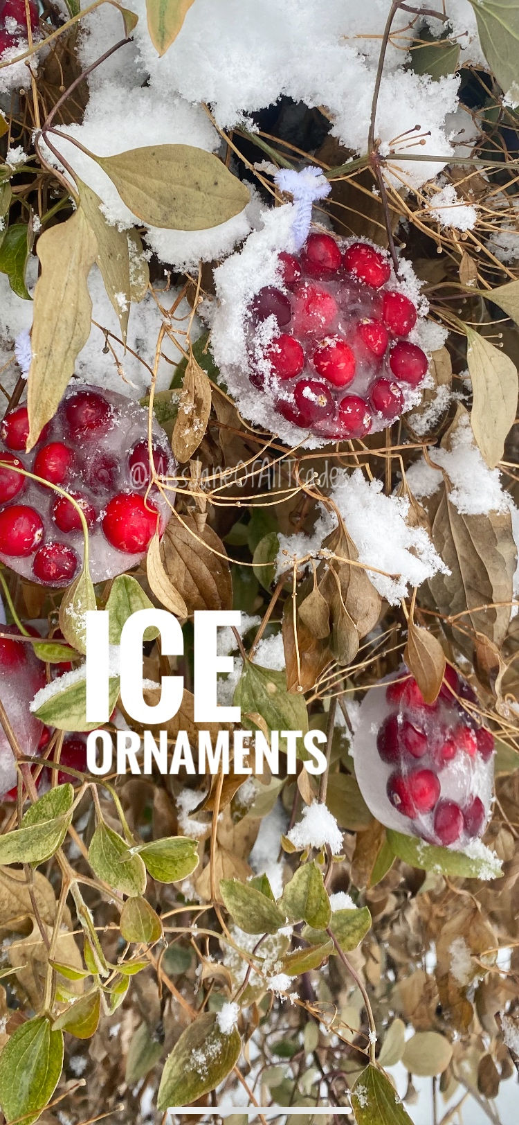 Maeve (3.5 yo) and I decided to make some beautiful icy ornaments to add a special touch to one of our bushes in the yard!